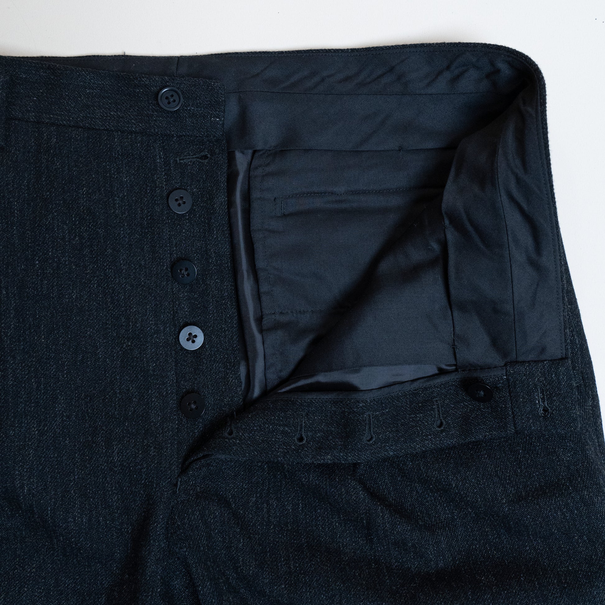 1940年〜50年代頃のトラウザーズからインスピレーションを受けデザインしたCLASSIC TROUSERS。クラシックなディティールを踏襲しており、ドロップループ、ボタンフライ、ヒップダーツはポケット口を貫通した仕様を採用しています。