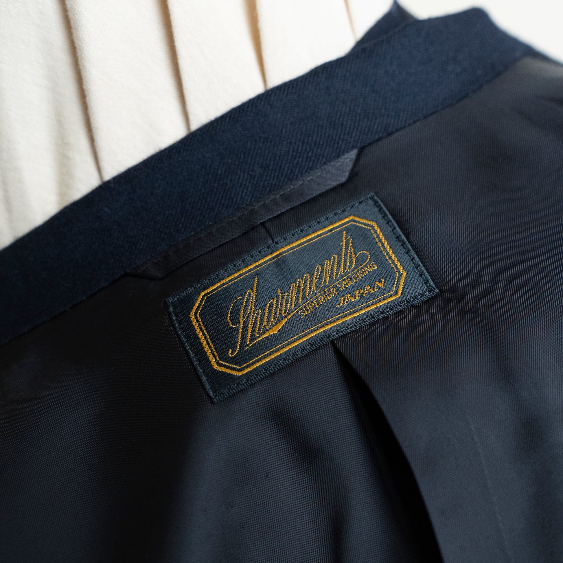 1920年〜30年前期のサックジャケットやスーツのヴィンテージピースや当時のパターン資料を元に、制作を行なったSignature Sack Suit。低めのゴージライン、肩線が後ろに回るコンパクトなナチュラルショルダー、フロントダーツを廃し、ややAラインに広がる独特なシルエットが特徴。現代には無い、どこかノスタルジックな雰囲気を纏っています。ベントはクラシックなノーベントスタイルが相性が良いです。