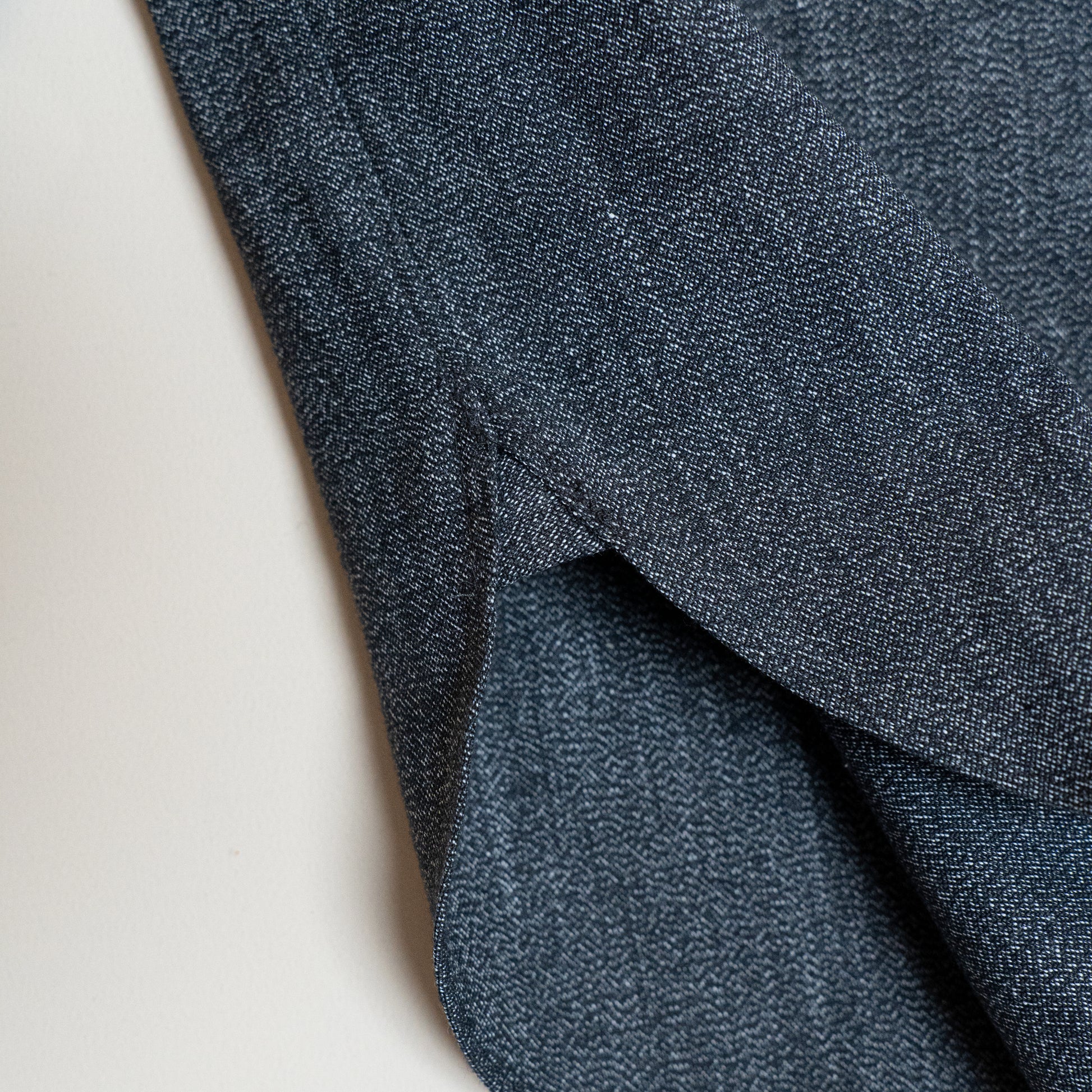 繊細なステッチで上品さを表現し、裾から脇にかけて巻き伏せ本縫いで縫い代を極限まで細く仕立てる事で、見た目を美しく、肌当たりの良さを実現しています。また、伝統的なテーラーリング技術を取り入れ、スプリットヨークや袖を後付け(オフセットスリーブ)にする事により腕の動きやすさを確保しています。