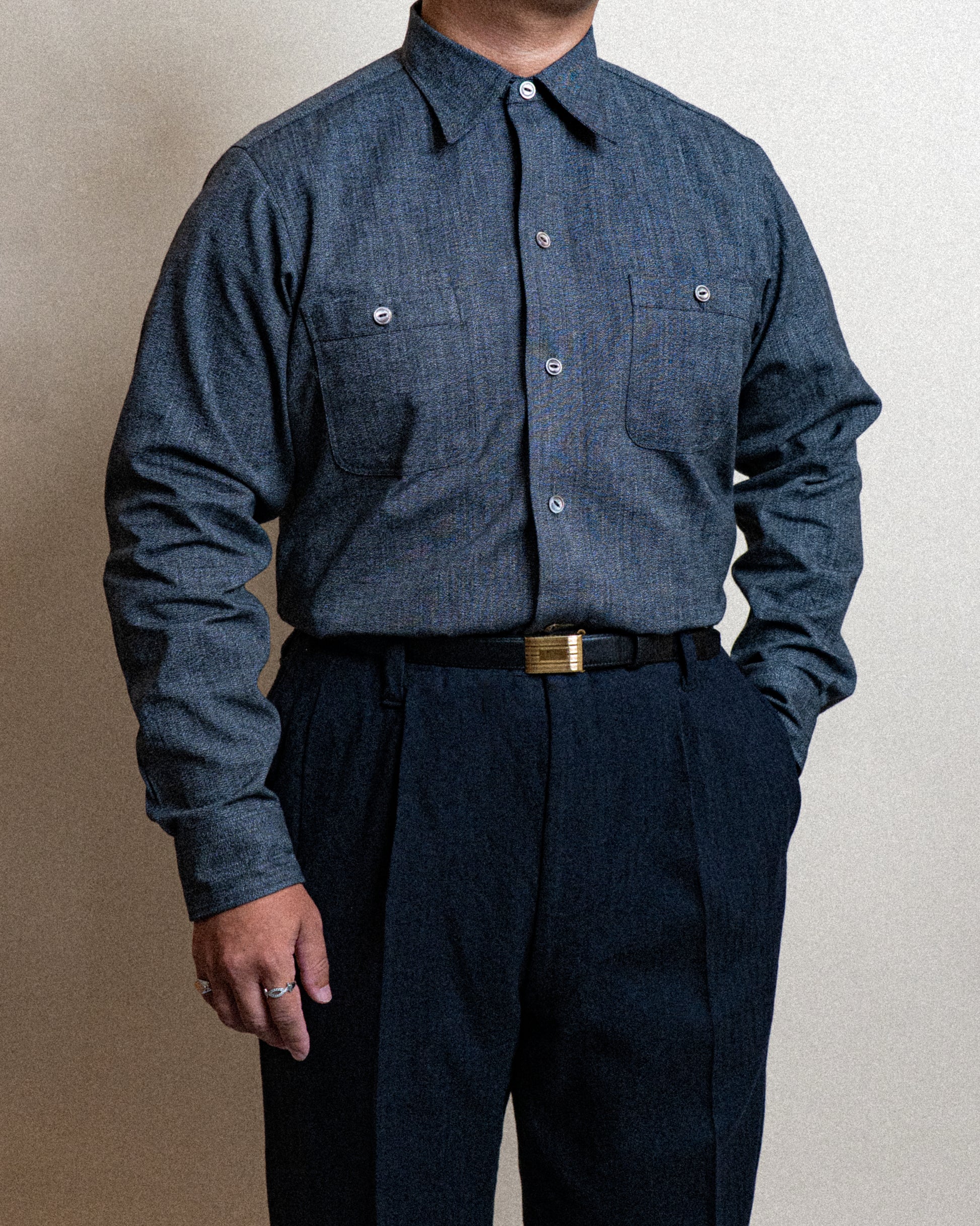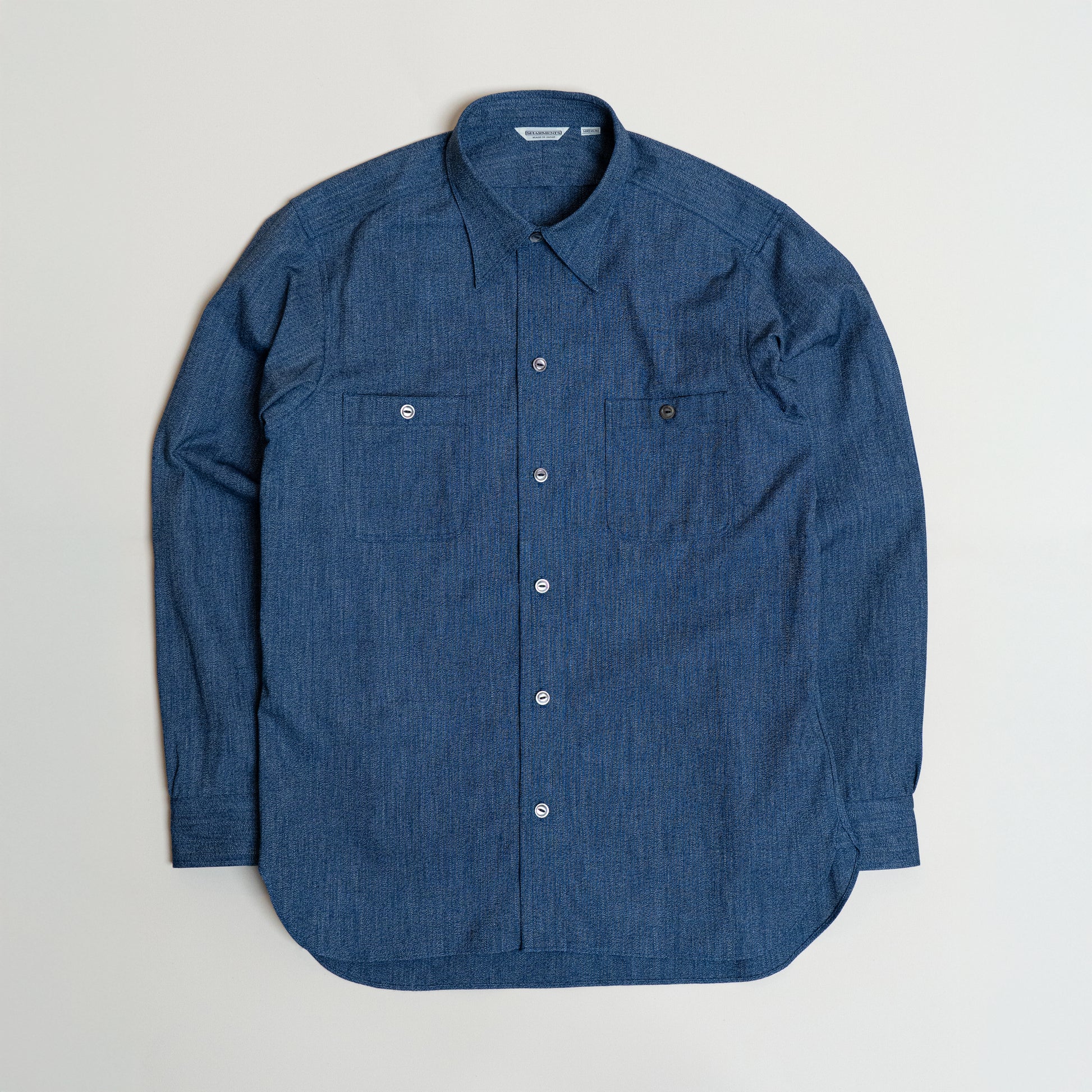 全ての箇所を1本針本縫いミシンで時間をかけて縫製したシグネチャーアイテム CLASSIC WORK SHIRT。ヨークの両サイドととカフスに施されたピンポイントギャザーや、キャッツアイボタン、職人が1着ずつ手裁断で表現するアールがかった襟は、クラシカルな印象を与えてくれます。また、柔らかい着心地にする為、芯地は最も薄いフラシ芯を使用。