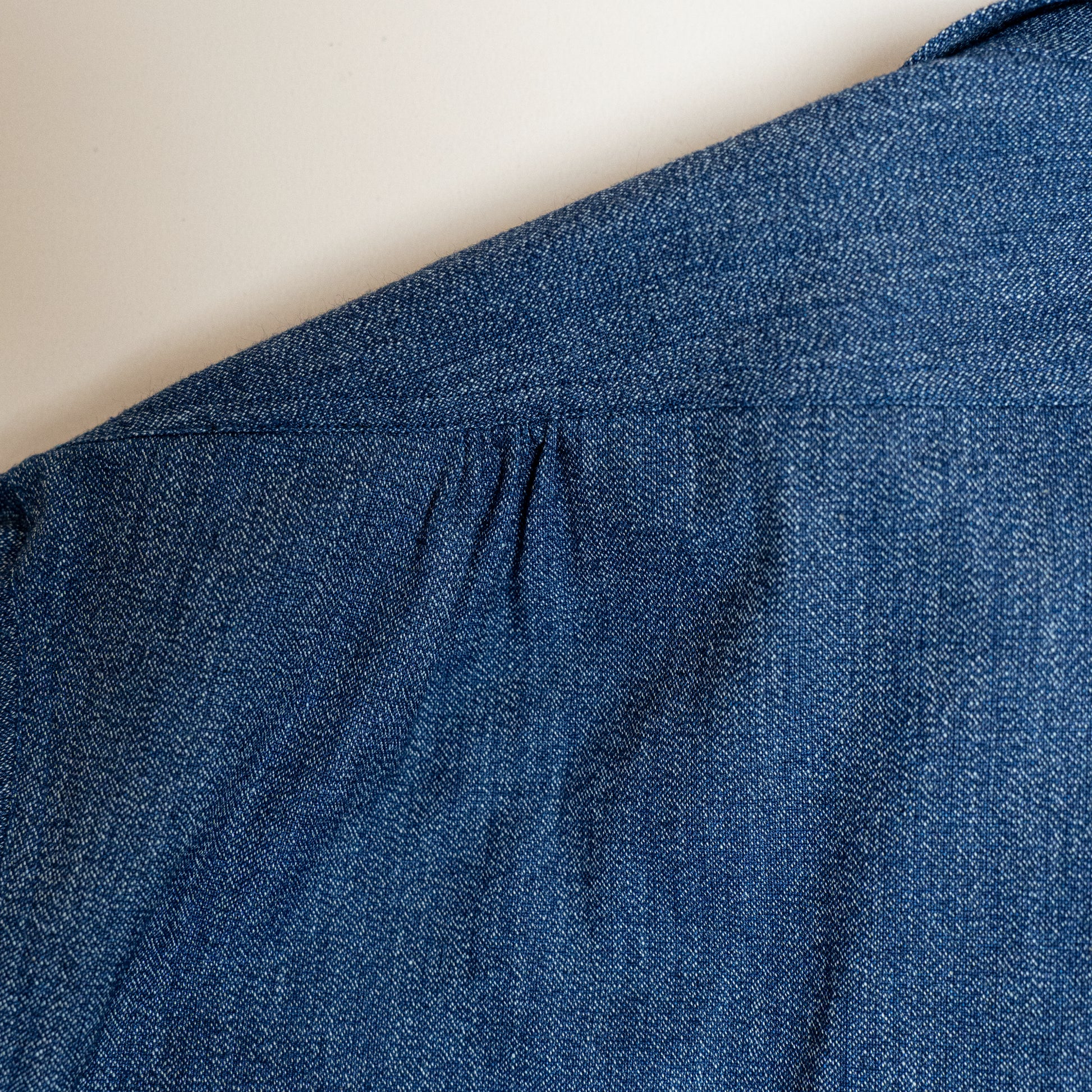 1940~1950年代の古き良き時代のシャツからインスピレーションを受けデザインしたOPEN COLLAR SHIRT。ドレスシャツのような細かいステッチで上品さを表現しています。また、伝統的なテーラーリング技術を取り入れ、袖を後付け(オフセットスリーブ)にする事により腕の動きやすさを確保しています。