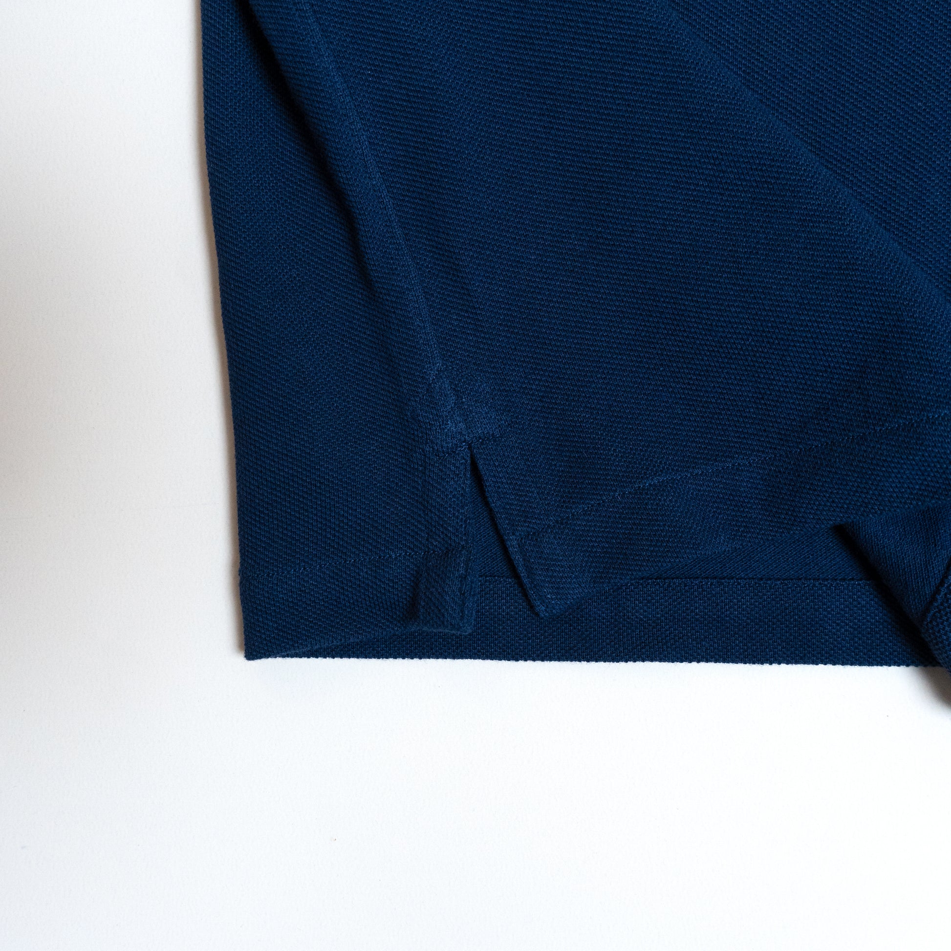 ショートポイントの3点留めが、スポーティーな印象を与えてくれます。ドレスシャツのような細かいステッチで上品さを表現し、ニット生地では通常ロックミシンで仕立てられている事が一般的ですが、身頃は困難とされている綺麗な細い巻き縫いで仕立てており、肌当たりが心地良い仕上げにしています。また、伝統的なテーラーリング技術を取り入れ、袖を後付け(オフセットスリーブ)にする事により腕の動きやすさを確保しています。